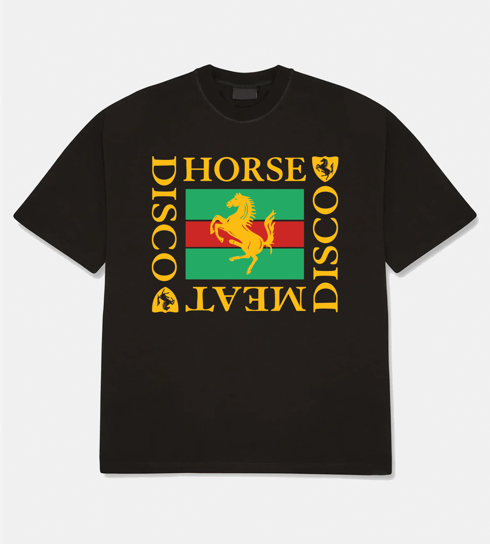 The HMD horse takes centre stage. A bold graphic tee with pure party pedigree. A striking horse motif for the ultimate disco rider. Wear it loud, wear it proud.