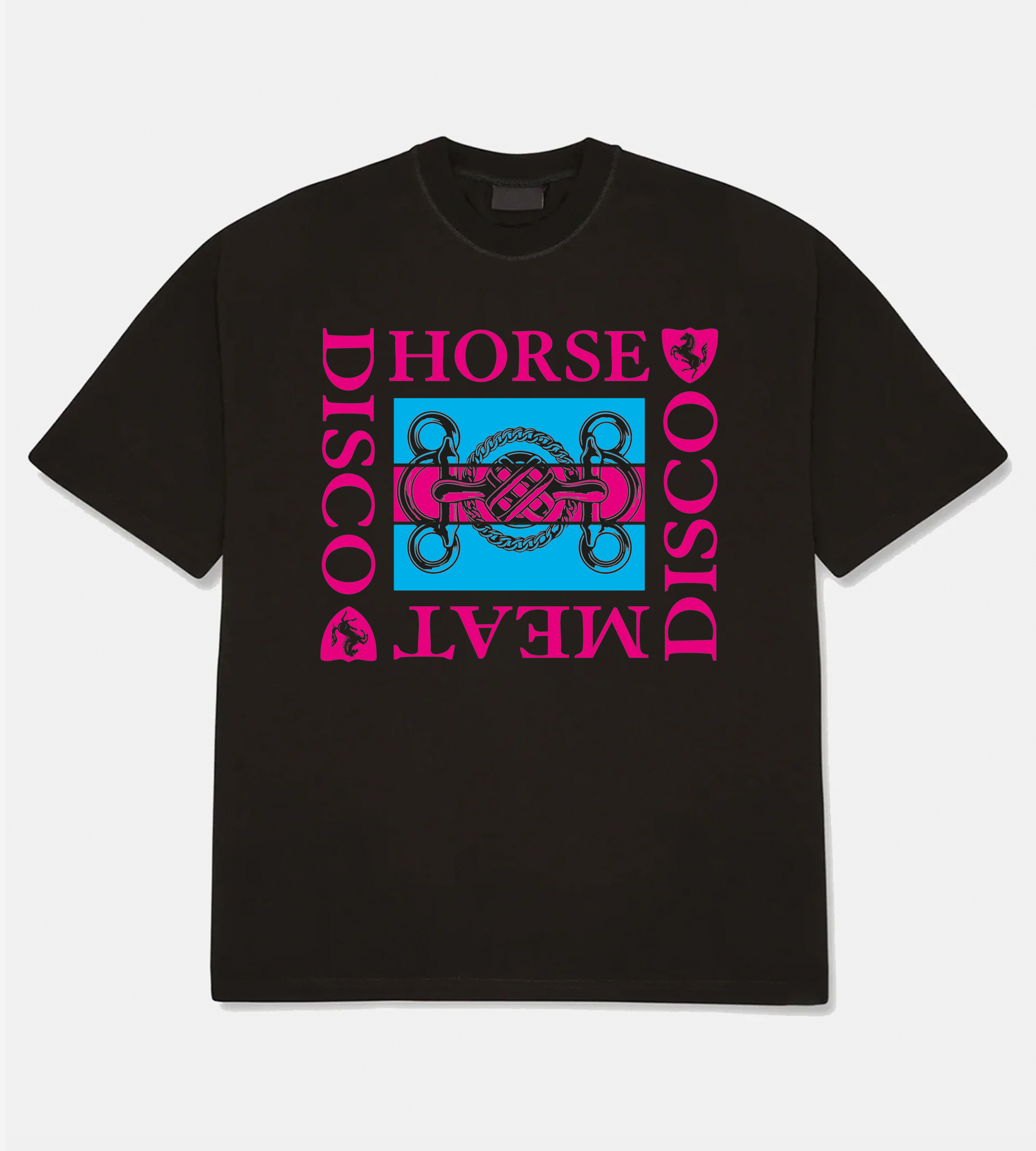 Horse Meat Disco Snaffle Black Tee - Pink / Blue